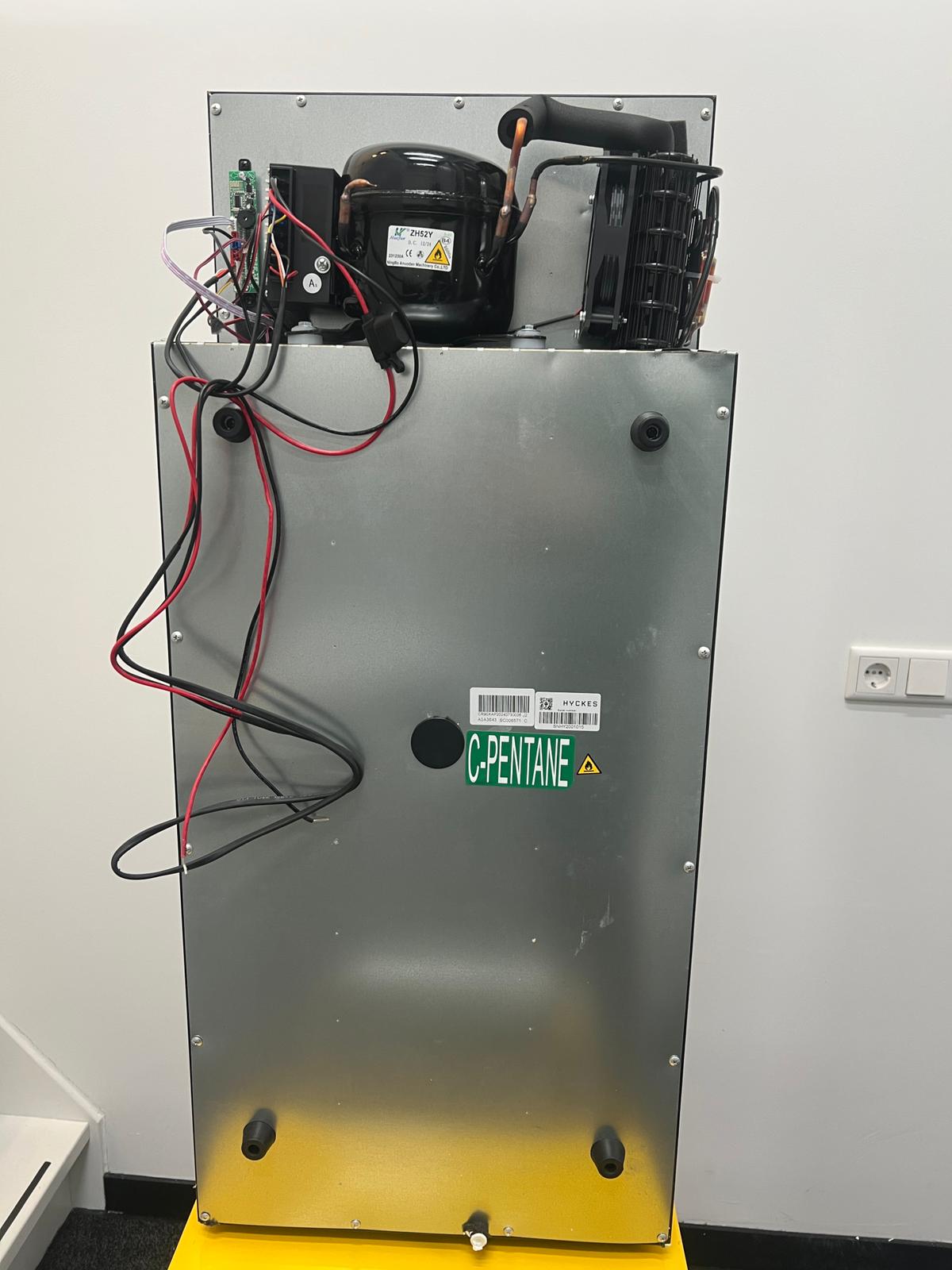 You can easily control the refrigerator via the digital control panel. The display shows the set or current temperature of the refrigerator compartment and gives access to the advanced settings. Download the Hyckes app on a phone or tablet to control the fridge from the comfort of your armchair. The app gives your mobile device access to all the functions of the refrigerator via Bluetooth. Thanks to the built in LED lighting that turns on automatically as soon as you open the door, the contents of the device are always clearly visible. Thanks to the easily reversible door, this fridge can be flexibly installed in any situation, be it a campervan, caravan or bus camper. With the optional mounting frame, you build in the fridge tightly and stably, regardless of the type of vehicle.