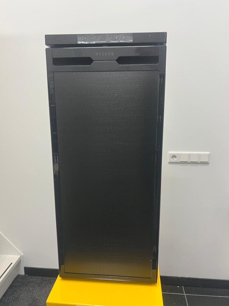 Vous pouvez facilement contrôler le réfrigérateur via le panneau de commande numérique. L’écran affiche la température réglée ou actuelle du compartiment réfrigérateur et donne accès aux paramètres avancés. Téléchargez l’application Hyckes sur un téléphone ou une tablette pour contrôler le réfrigérateur depuis le confort de votre fauteuil. L’application permet à votre appareil mobile d’accéder à toutes les fonctions du réfrigérateur via une connection Bluetooth. Grâce à l’éclairage LED intégré qui s’allume automatiquement dès que vous ouvrez la porte, le contenu de l’appareil est toujours clairement visible. Grâce à la porte facilement réversible, ce réfrigérateur peut être installé de manière flexible dans n’importe quelle situation, qu’il s’agisse d’un camping-car, d’une caravane ou d’un autocaravane. Avec le cadre de montage optionnel, vous pouvez installer le réfrigérateur de manière stable et solide, quel que soit le type de véhicule.